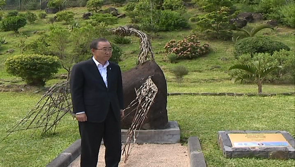 Le Secrétaire Générale des l'ONU Ban Ki-moon s'est rendu au Morne Monument de la Route Internationale des Esclaves ou il a s'est recueilli et a déposé un bouquet. L’occasion pour lui de voir les œuvres des différente sculpteurs. Ill a salué les efforts de ceux qui oeuvent opur garder ce lieu intacte.