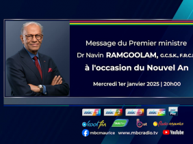 Le message du Premier ministre, le Dr Navin Ramgoolam, à l'occasion du Nouvel An, sera diffusé sur les différentes plateformes de la MBC à 20h00 le 1er janvier 2025. Il sera disponible à la télévision sur MBC1, MBC2, MBC3 et MBC SAT, à la radio sur KOOL FM, RADIO MAURICE, TAAL FM et BEST FM, ainsi que sur MBC PLAY, MBC FACEBOOK et MBC YOUTUBE.